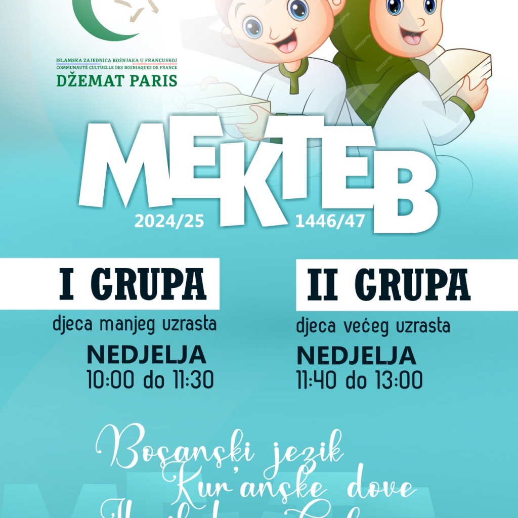 Obavještenje za polaznike mekteba džemata Paris